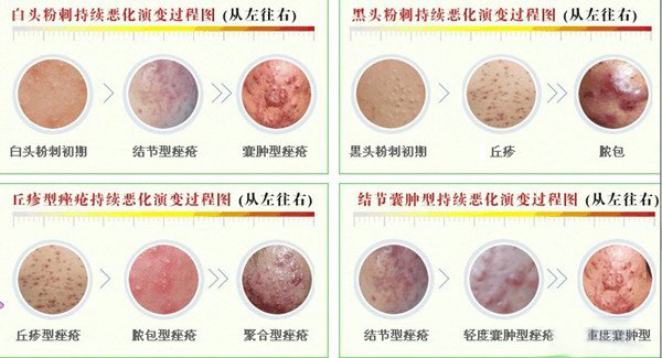 4、混合性痤疮:兼有以上3种形态,属于复杂性病变。